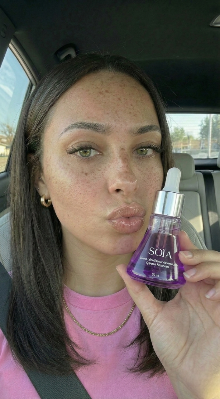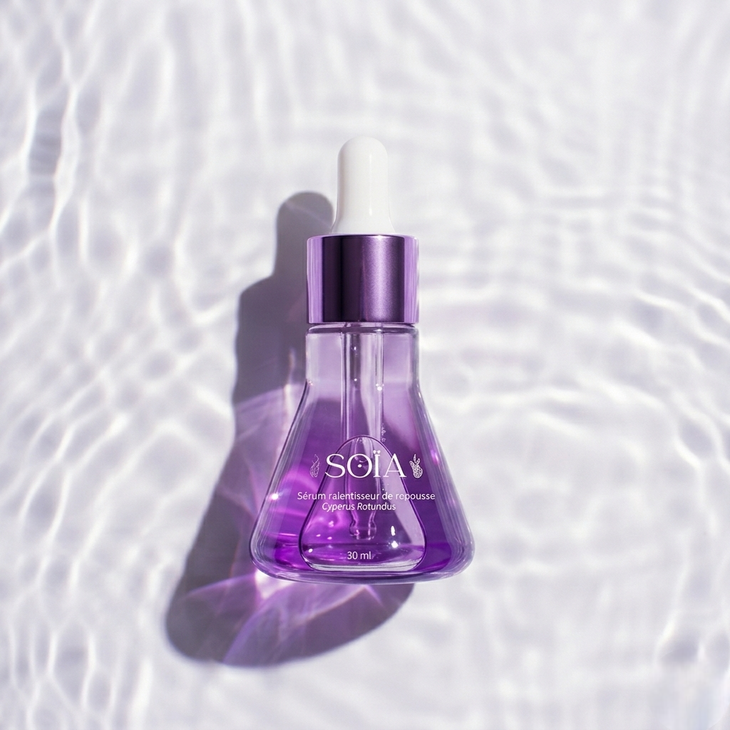 Soïa contient un extrait de Cyperus Rotundus qui inhibe l'enzyme responsable de la croissance du poil. Appliqué quotidiennement, il ralentit la repousse, affine les poils et réduit leur densité semaine après semaine.